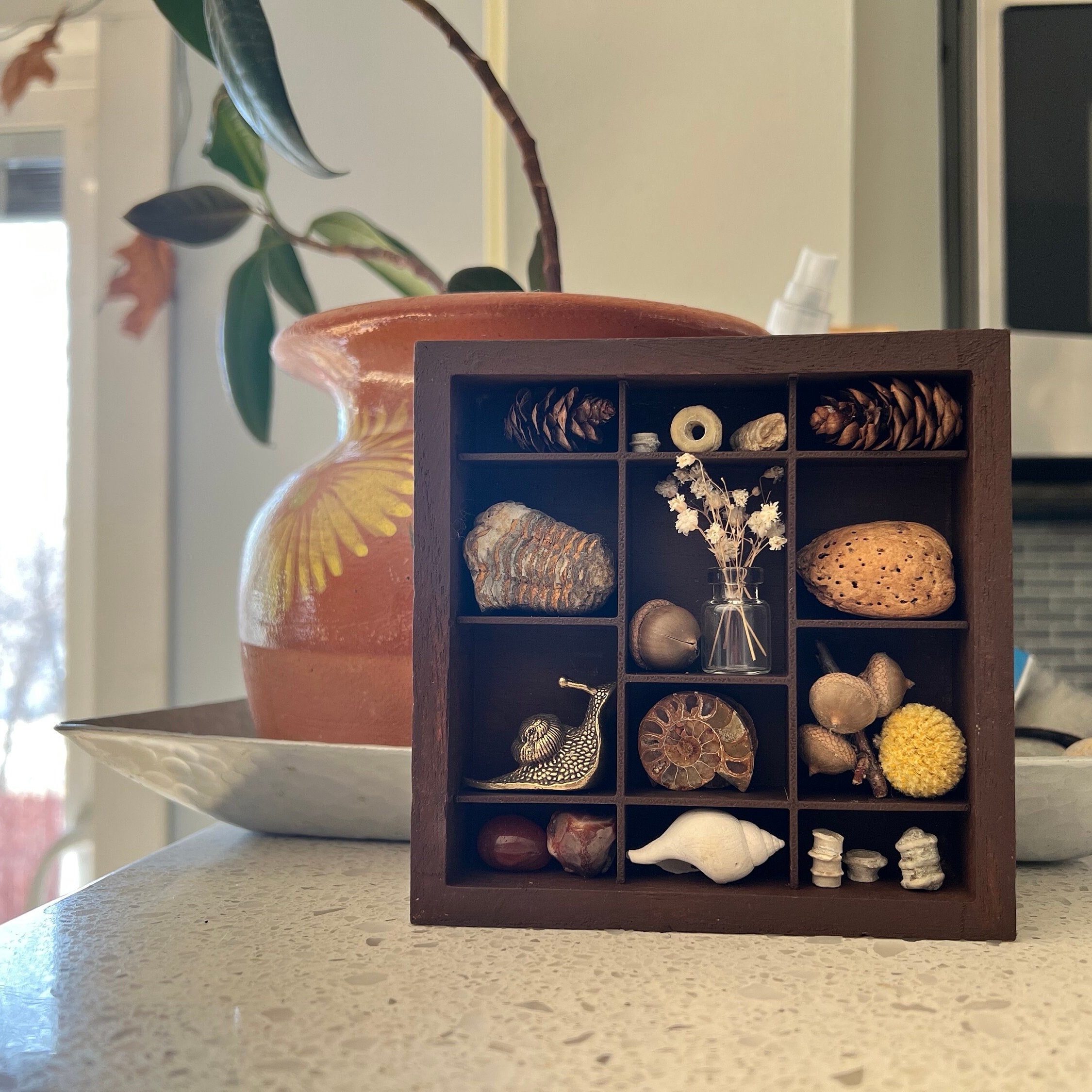MINI wooden Curiosity Cabinet. Also known as Printer Drawer Letterbox, perfect for displaying very small rocks, fossils, shells, figurines, or any other oddities you might think of. Shelf of Curiosities. Wall Decoration. Cabinet Drawer, vintage looking.
